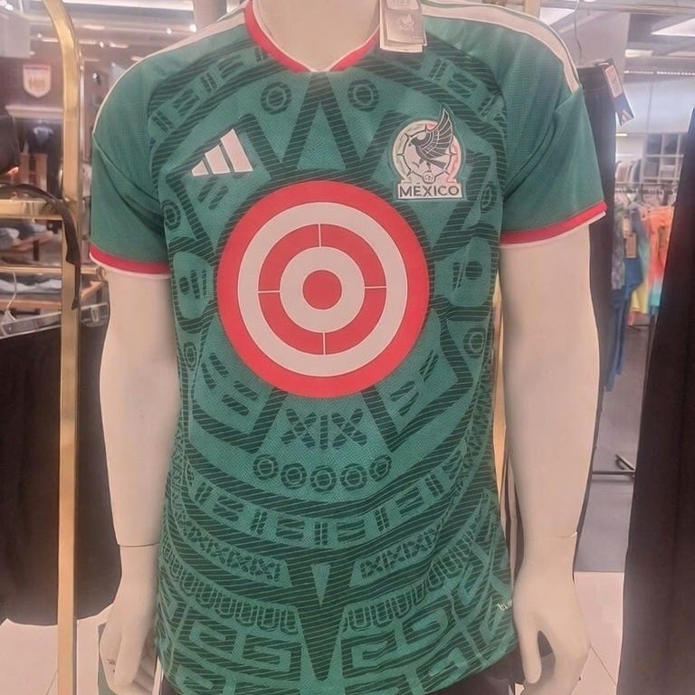 Y entonces, saliendo de la escalera eléctrica habia maniquís con la camiseta de la selección nacional. Avancé al siguiente pasillo y ¡Zaz! Que se me ocurre una idea. Regresé a tomar una foto, la adecué en el celular y tenía un meme en mi cuenta de X unos minutos después de la idea original. No pueden decir que no le hago caso a las corazonadas.