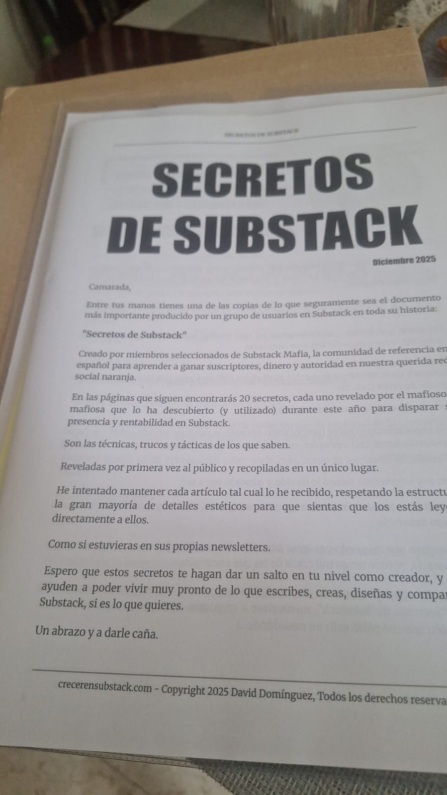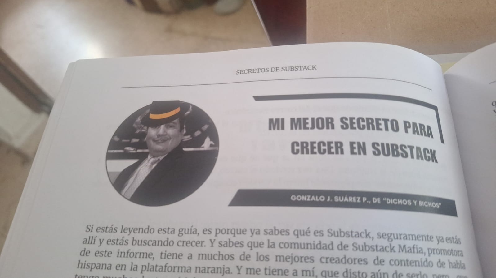 Pero no son las más relevantes hasta ahora. Eso fue participar en el reporte especial “Secretos de Substack”, en el que 20 expertos en la red naranja de habla española compartimos nuestros mejores consejos para crecer por acá. ¿Lo mejor? Se trata de un reporte impreso, no digital, ofrecido en cantidades limitadas y durante poco menos de un mes. Solo en diciembre pudieron comprar uno de los cien ejemplares del reporte especial para Crecer en Substack.