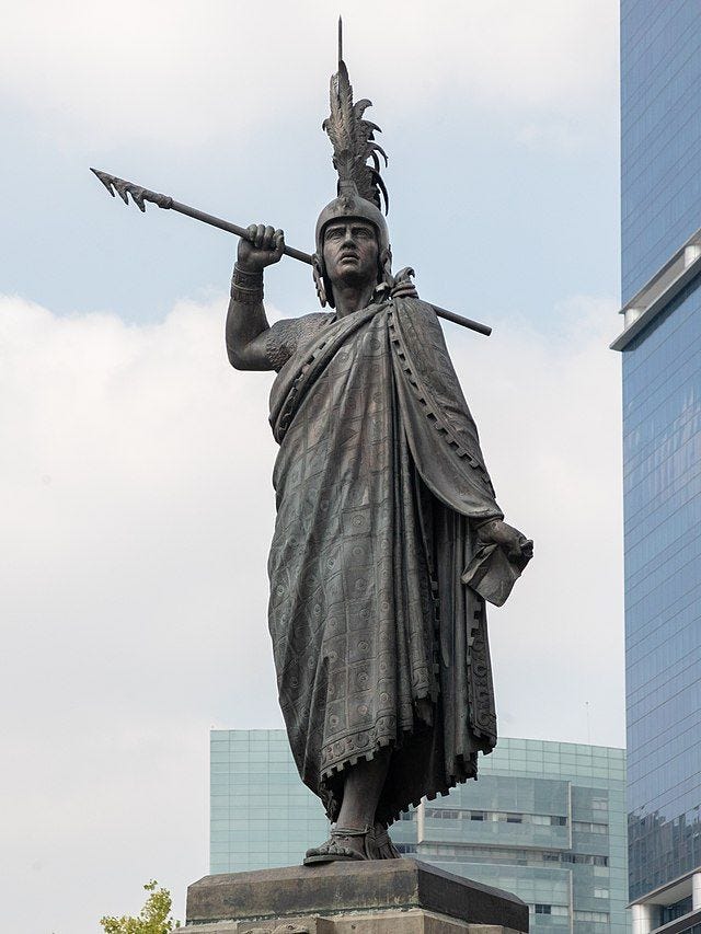 Si se hace con respeto, me parece que es lo mejor que podemos hacer los novelistas que abordamos textos históricos. Por ejemplo, este señor que fue el último emperador azteca y que ahora tiene un monumento en Paseo de la Reforma, justo en el cruce de las dos avenidas más emblemáticas de la capital mexicana: la más larga y la más hermosa.