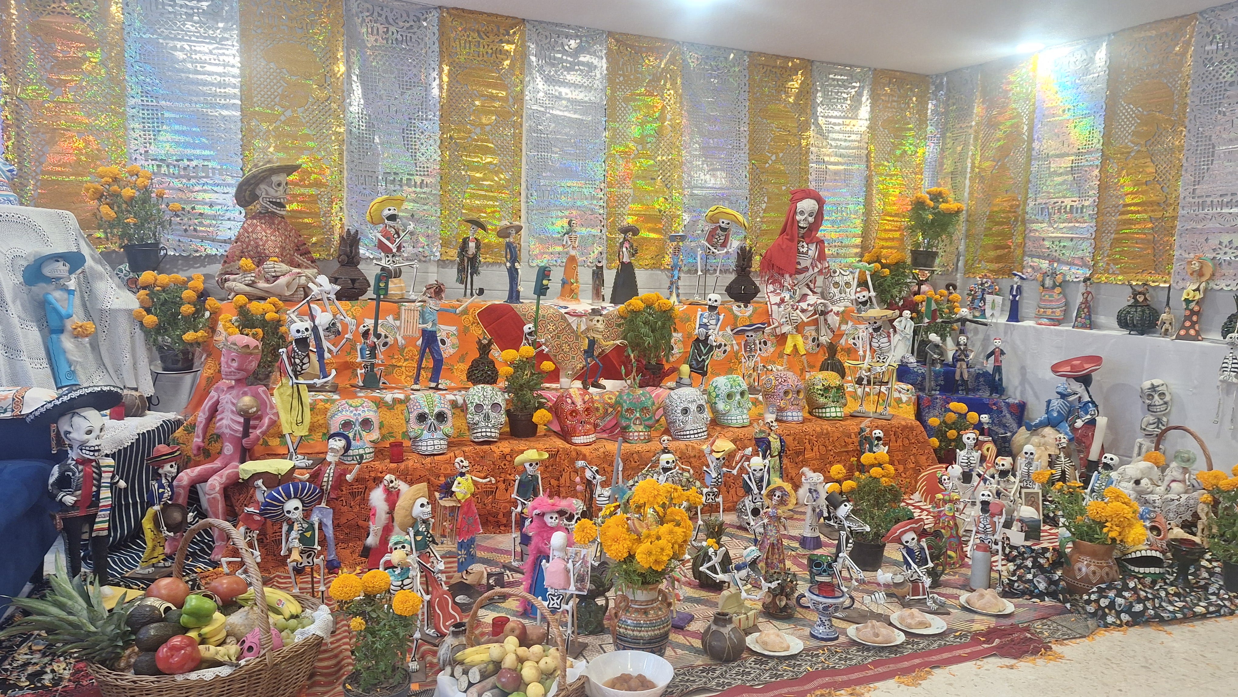 Cabe destacar que esta es parte de la colección que, a lo largo de medio siglo, han ido compilando mis padres de esta hermosa tradición. Verán calaveras de cuerpo completo, cráneos gigantes, figuras “en acción”, sea un vendedor de pájaros, un buzo, un repartidor de gas, una banda de mariachis, algún borracho; mujeres elegantes y otras de la vida galante. Todo para recordarnos que “hoy estamos, mañana no” y que “la vida es un momento que hay que gozar”.