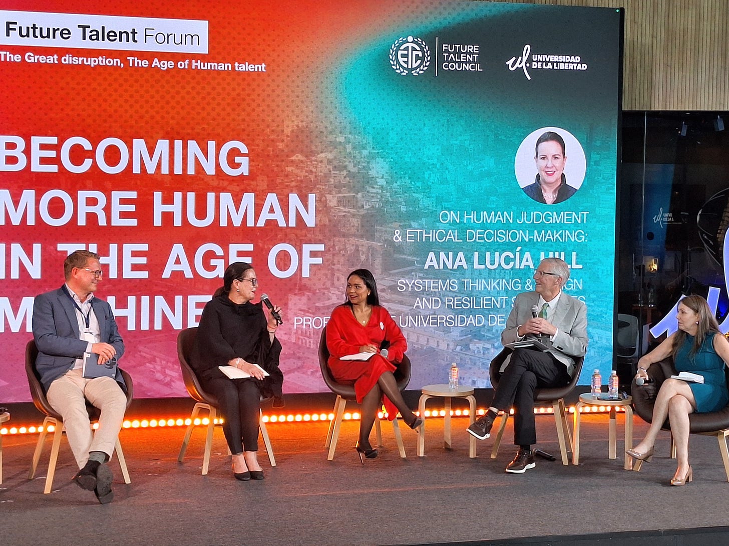 Aunque el foro duró día y medio, solo me tocó estar el primero por una complicación de agenda. Y una de las mejores sesiones fue la penúltima de ese día. En esa participaron Ana Lucía Hill, de la Universidad de la Libertad; Claudia Cárdenas, de LinkedIn; Johanna Flores, de CryoHoldo Biotec; Anders Finne, de Leader Lens y miembro del FTC; y fue moderador el profesor Fischetti, quien condujo los talleres de los que ya les había contado.